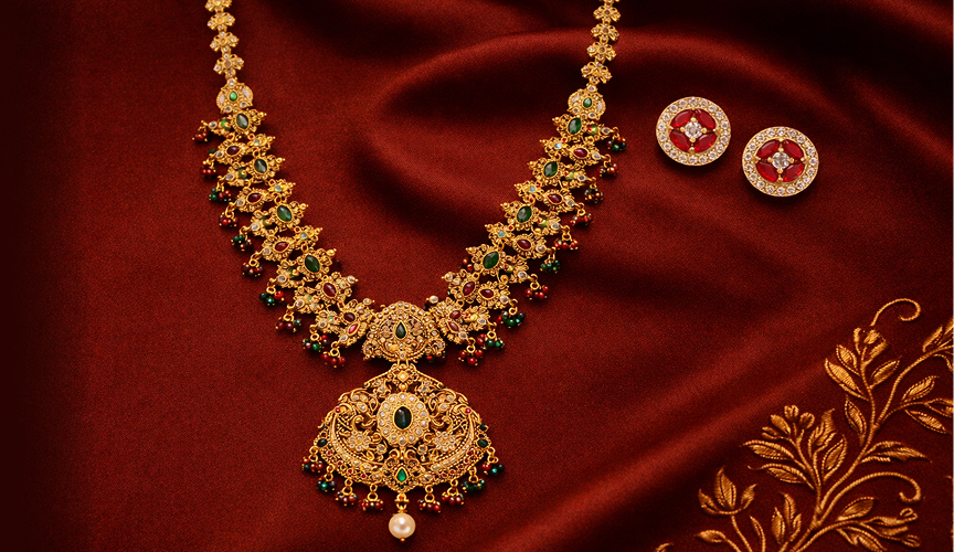 We blend traditional artistry with modern trends to create collections perfect for weddings, festivals, parties, and everyday wear. From stunning bridal sets and temple jewellery to elegant necklaces, bangles, earrings, and rings, every piece reflects superior craftsmanship, long-lasting polish, and a timeless charm.